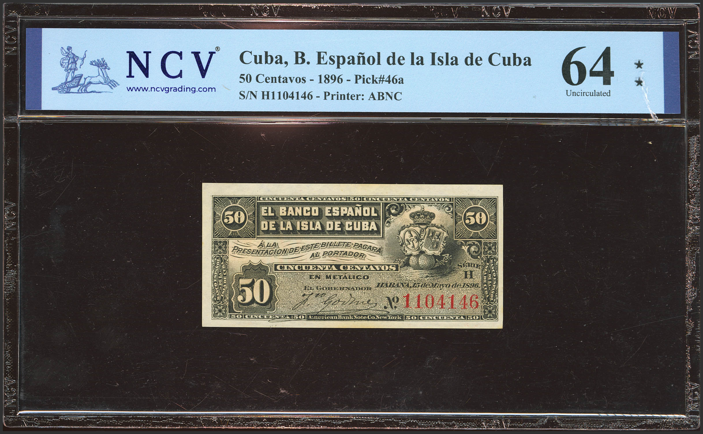 BANCO ESPAÑOL DE LA ISLA DE CUBA. 50 Centavos. 15 de Mayo de 1986. Sin serie. (Edifil 2023: 70, Pick: 46a). SC. Encapsulado NCV64.
