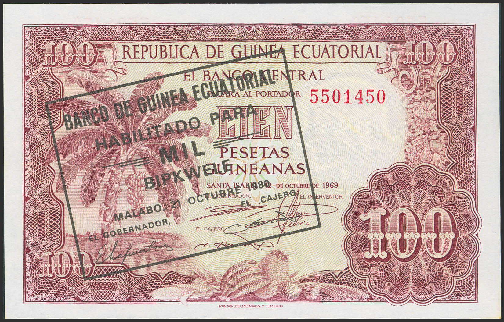 GUINEA ECUATORIAL. 1000 Bipkwele. 21 de Octubre de 1980. Sin serie. (Edifil 2023: Página 247, Pick: 18). Apresto original. SC-.