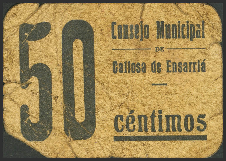 CALLOSA DE ENSARRIA (ALICANTE). 50 Céntimos. (1937ca). (González: 1419). Muy raro. BC-.