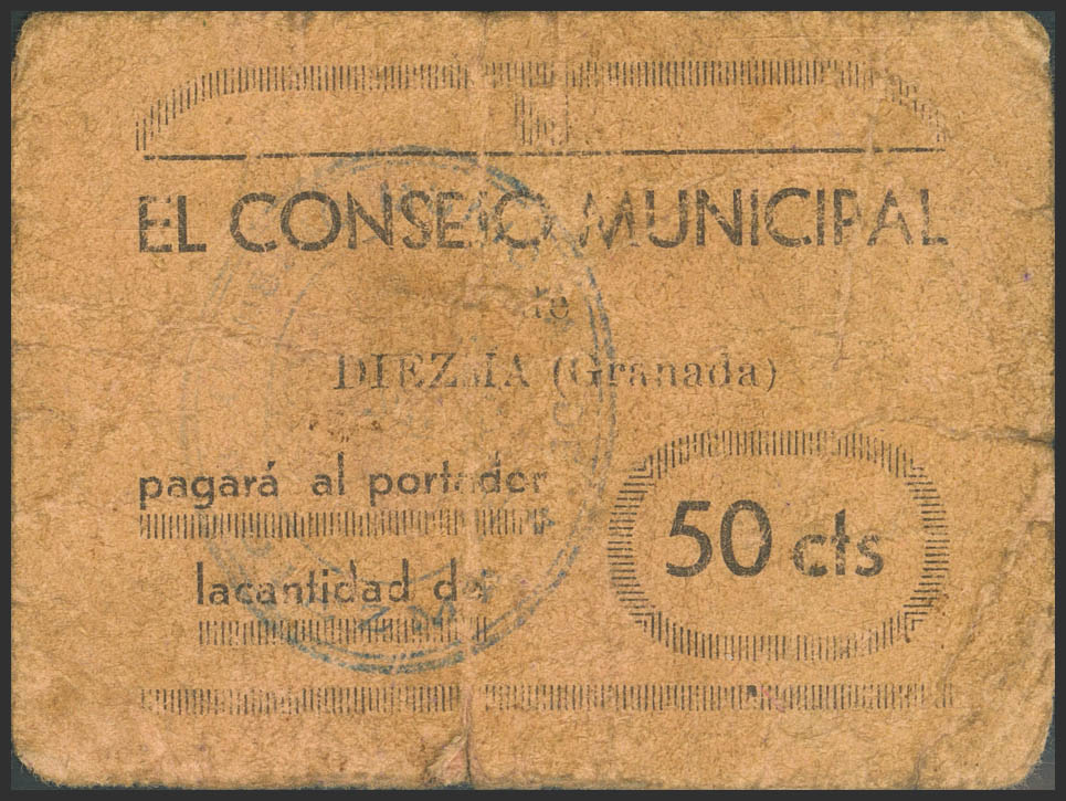 DIEZMA (GRANADA). 50 Céntimos. (1937ca). (González: 2219). Muy raro. BC-.