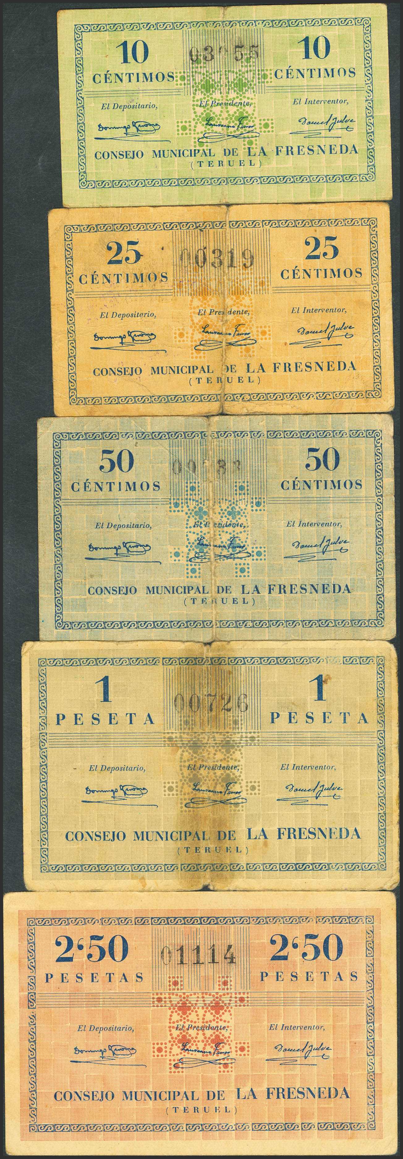 FRESNEDA (TERUEL). 25 Céntimos, 50 Céntimos, 1 Peseta y 2´50 Pesetas. (1937ca). (González: 2530/34). Rarísima serie completa. MBC-/EBC+++.
