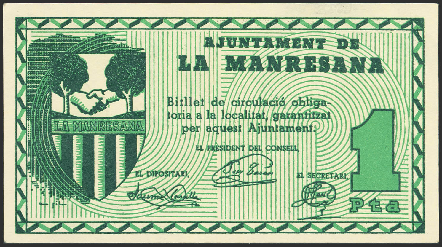 LA MANRESANA (BARCELONA). 1 Peseta. (1937ca). Sin serie. (González: 8553). SC.