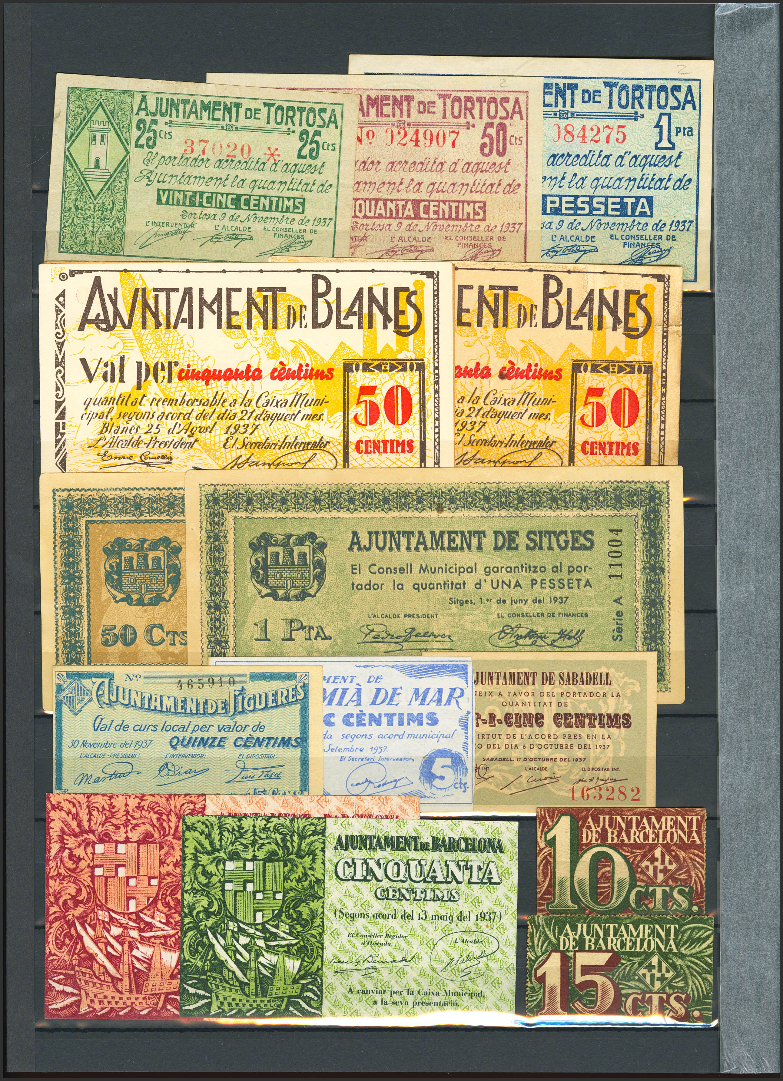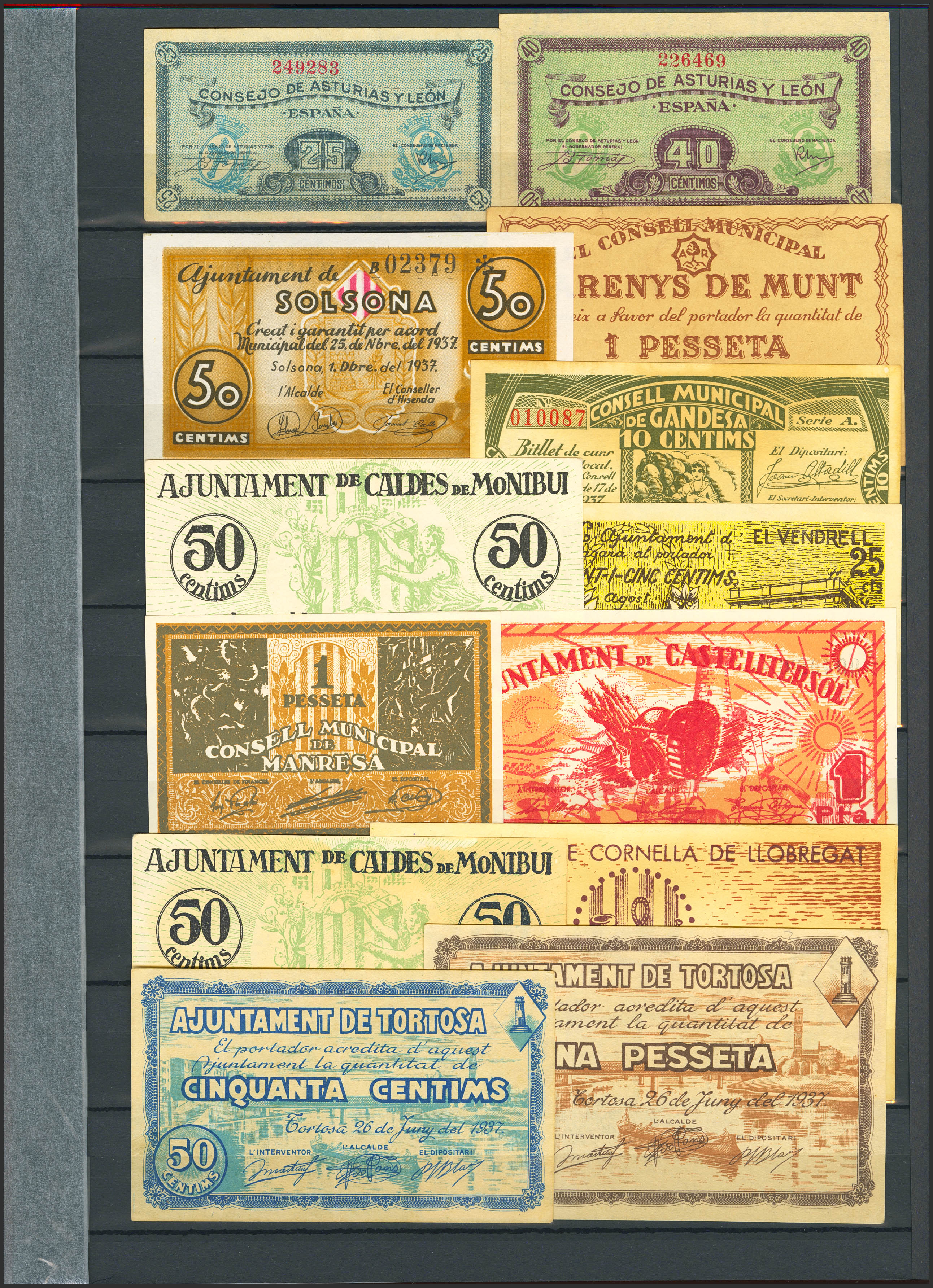 Conjunto de más de 30 billetes de la Guerra Civil de diferentes localidades y calidades. A EXAMINAR.
