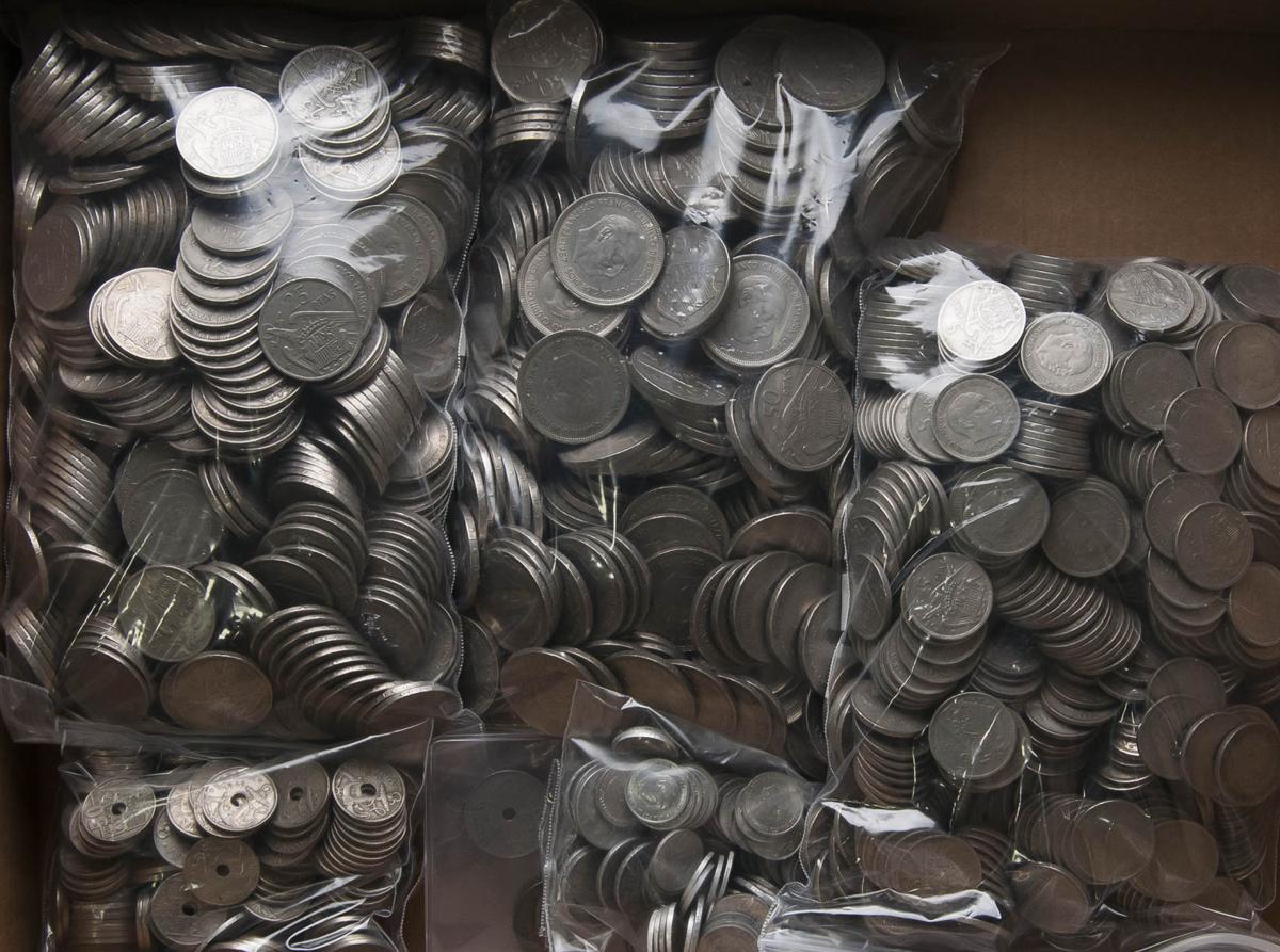 ESTADO ESPAÑOL. Lote compuesto por miles de monedas, conteniendo: 10 Céntimos 1935-40-41-45-53, 1956 y 1959; 25 Céntimos 1937; 50 Céntimos 1949 *51, *51 flechas invertidas, *52-53-54-56-62-64-65, 1963 *64-65, 1966 *67-68-69-71-72-73; 1 Peseta 1944-47-53-63 y 1966; 2,50 Pesetas 1953 *53-54 y 56; 5 Pesetas 1949 *50; 1957 *58-59-60-61-62-63-64-65-66-67-68-69-70-71-72-73-74-75; 25 Pesetas 1957 *58-59-61-64-65-66-67-68-69-70-71-72-74-75 y 50 Pesetas 1957 *58-59-60-67-69-71. Calidades diversas, mayormente circuladas. A EXAMINAR.