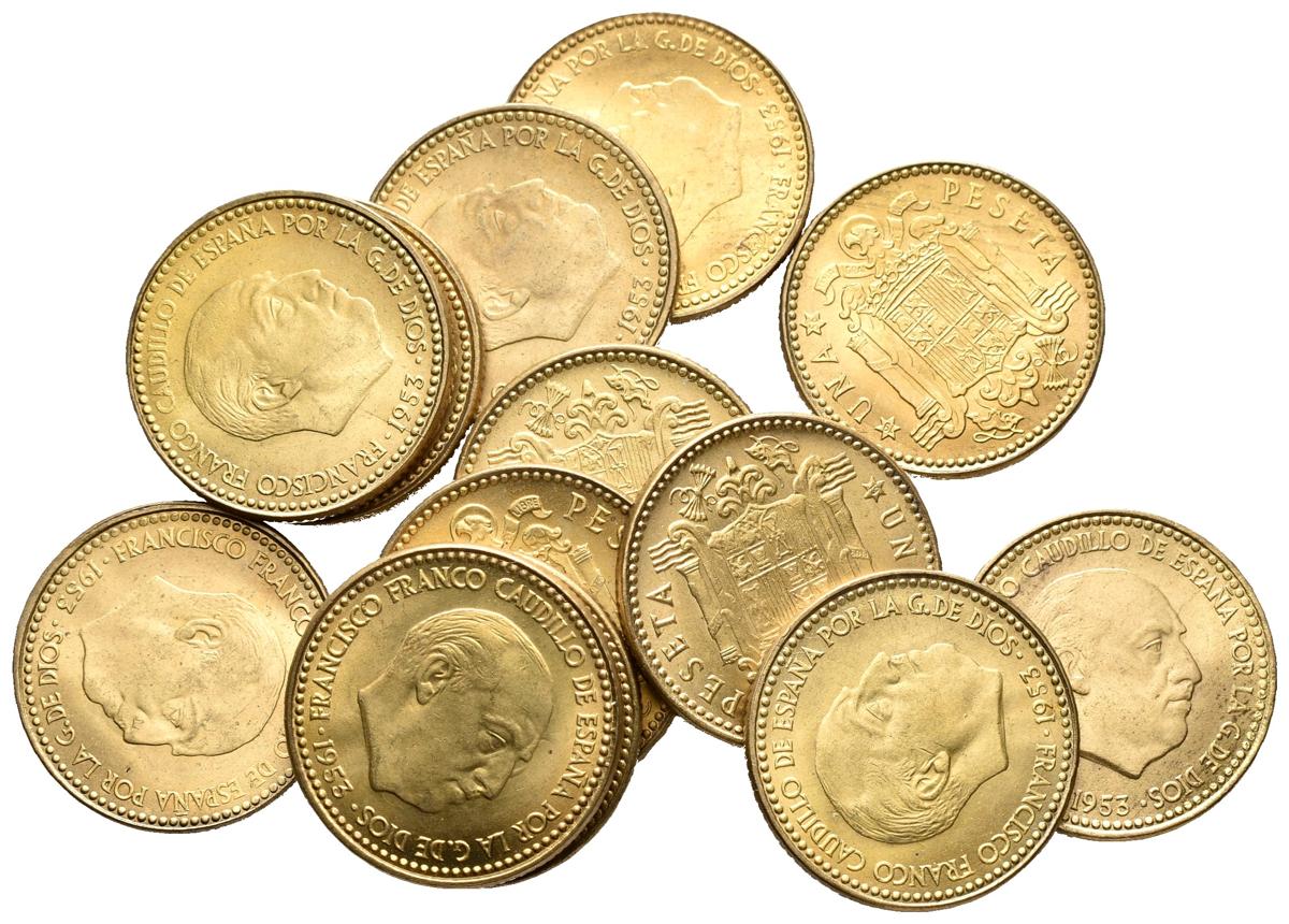 ESTADO ESPAÑOL. Lote compuesto por 13 monedas de 1 Peseta 1953 *19-56, procedentes de cartucho F.N.M.T. SC. A EXAMINAR.