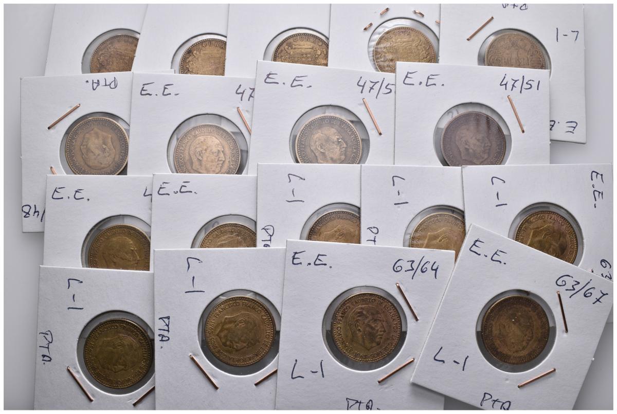 ESTADO ESPAÑOL. Lote compuesto por 18 monedas de 1 Peseta, conteniendo los años: 1944, 1947 *48-49-50-51-52-53 y 54, 1953 *56-60-61-62 y 63, 1963 *63-64-65-66 y 67. BC+/MBC. A EXAMINAR.