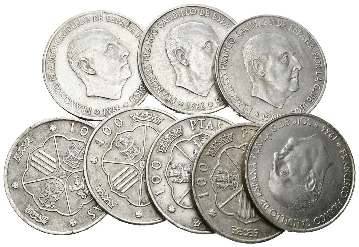 ESTADO ESPAÑOL. Lote compuesto por 8 monedas de 100 Pesetas, conteniendo: 1966 *66 (2), 67 (4) y 68 (2). Ar. A EXAMINAR.