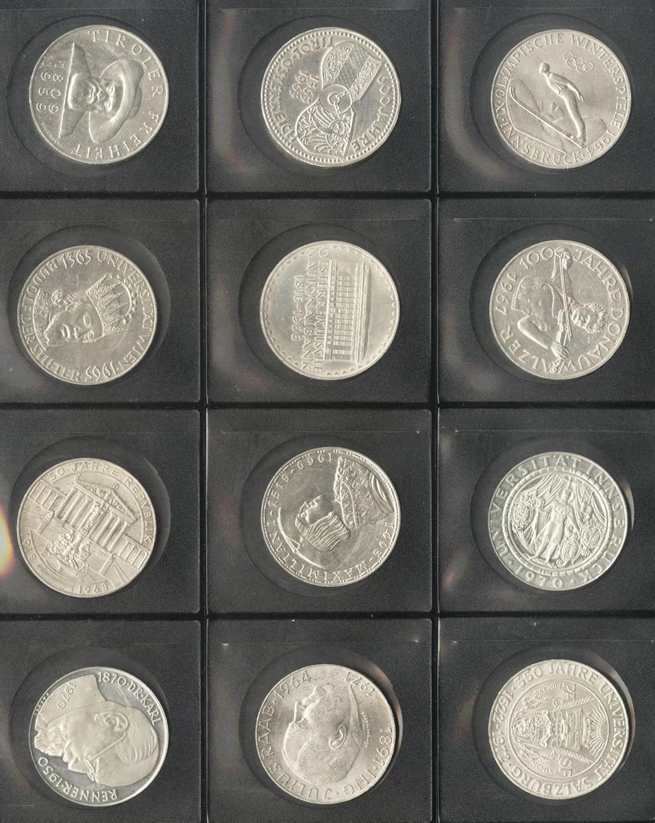 AUSTRIA. Lote compuesto por 20 monedas de 50 Schilling, conteniendo los años 1959, 1963, 1964, 1965, 1966, 1967, 1968, 1969, 1970 (2), 1971, 1972 (2), 1973 (2), 1974 (4) y 1978. Todos diferentes con gran variedad de emisiones conmemorativas. Ar. MBC+/SC. A EXAMINAR.