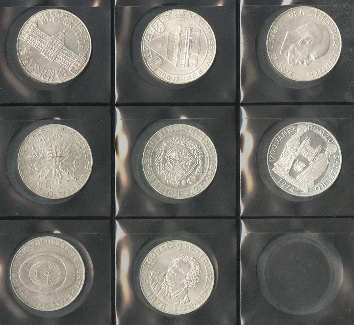 AUSTRIA. Lote compuesto por 20 monedas de 50 Schilling, conteniendo los años 1959, 1963, 1964, 1965, 1966, 1967, 1968, 1969, 1970 (2), 1971, 1972 (2), 1973 (2), 1974 (4) y 1978. Todos diferentes con gran variedad de emisiones conmemorativas. Ar. MBC+/SC. A EXAMINAR.