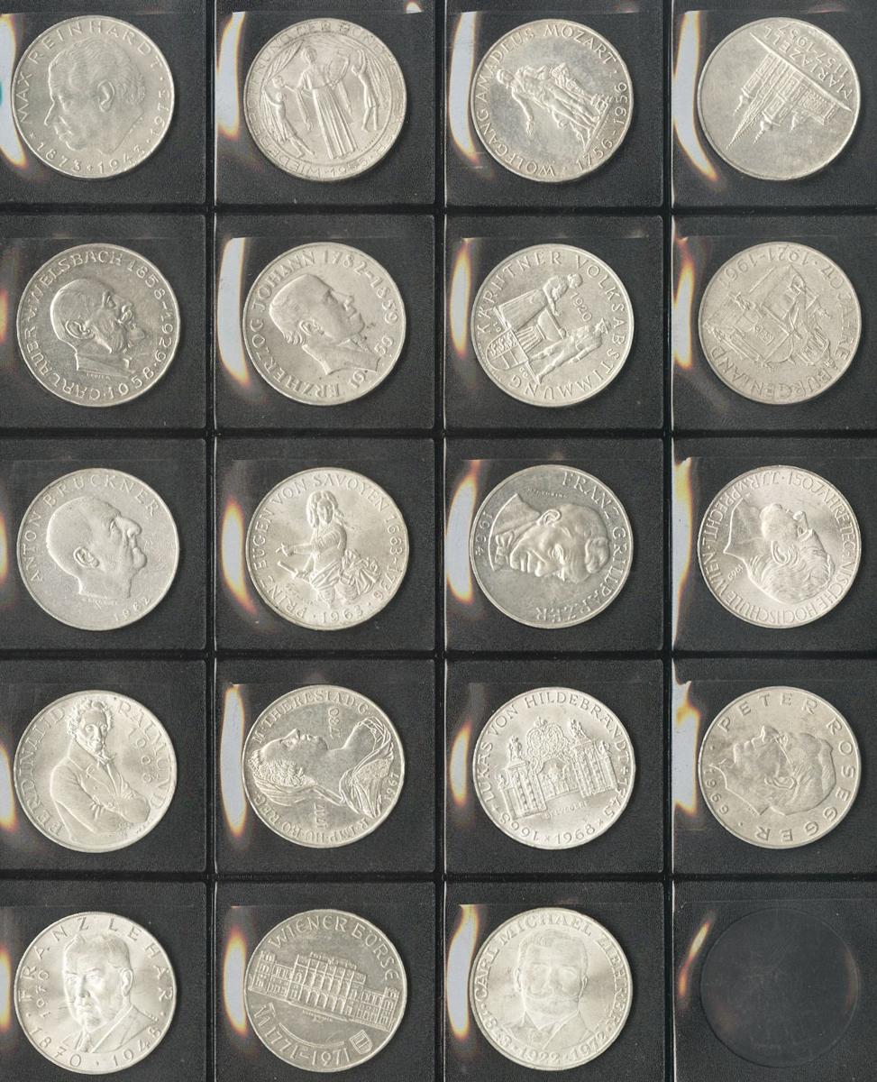 AUSTRIA. Lote compuesto por 19 monedas de 25 Schilling, conteniendo los años 1943, 1955,1956, 1957, 1958, 1959, 1960, 1961, 1962 y 1963. Todos diferentes con gran variedad de emisiones conmemorativas. Ar. MBC+/SC. A EXAMINAR.