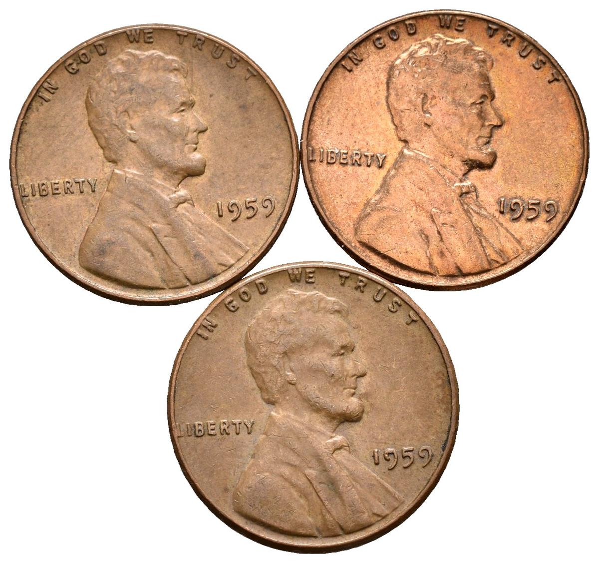 ESTADOS UNIDOS. Lote compuesto por 3 monedas de 1 Cent de 1959. MBC-/MBC+. A EXAMINAR.