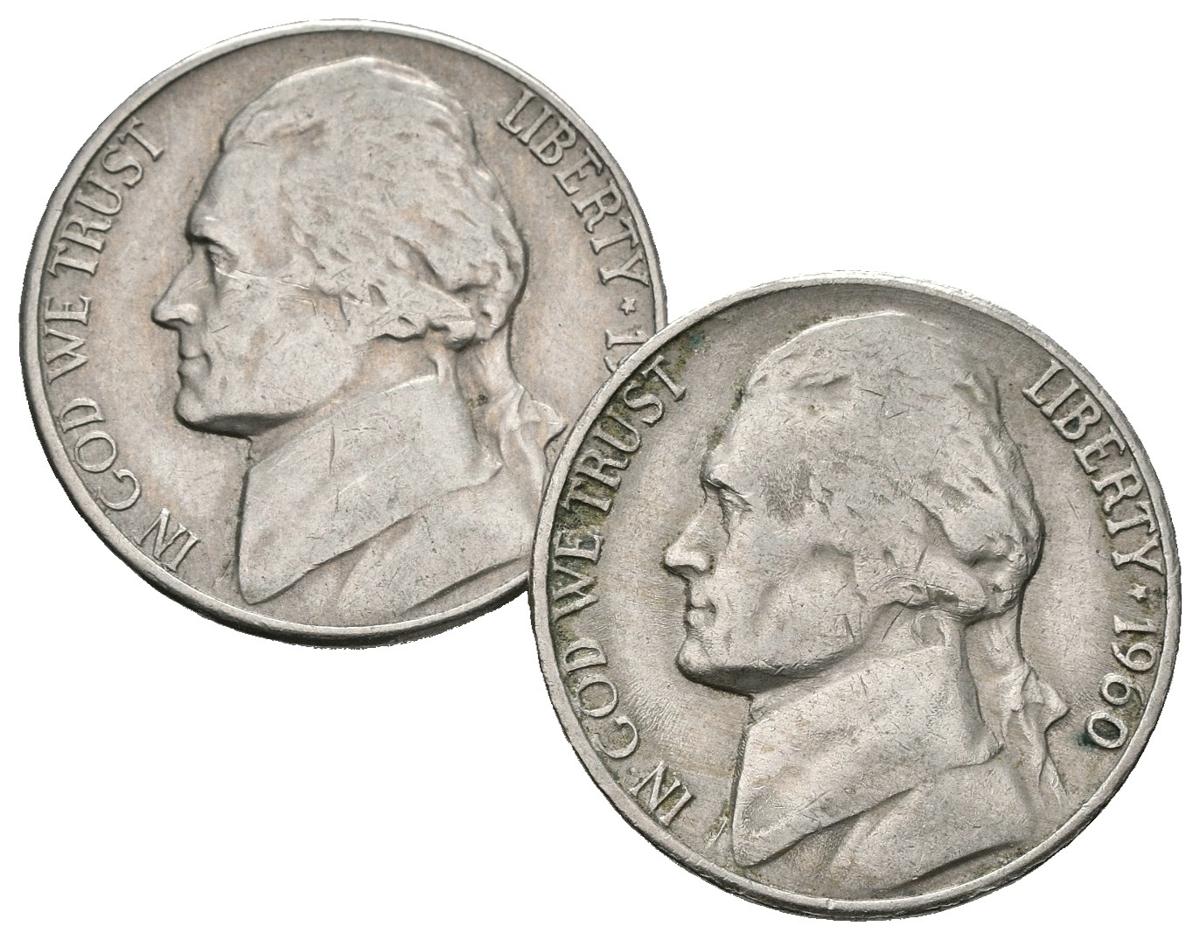 ESTADOS UNIDOS. Lote compuesto por 2 monedas de 5 Cents de 1960. MBC-/MBC. A EXAMINAR.
