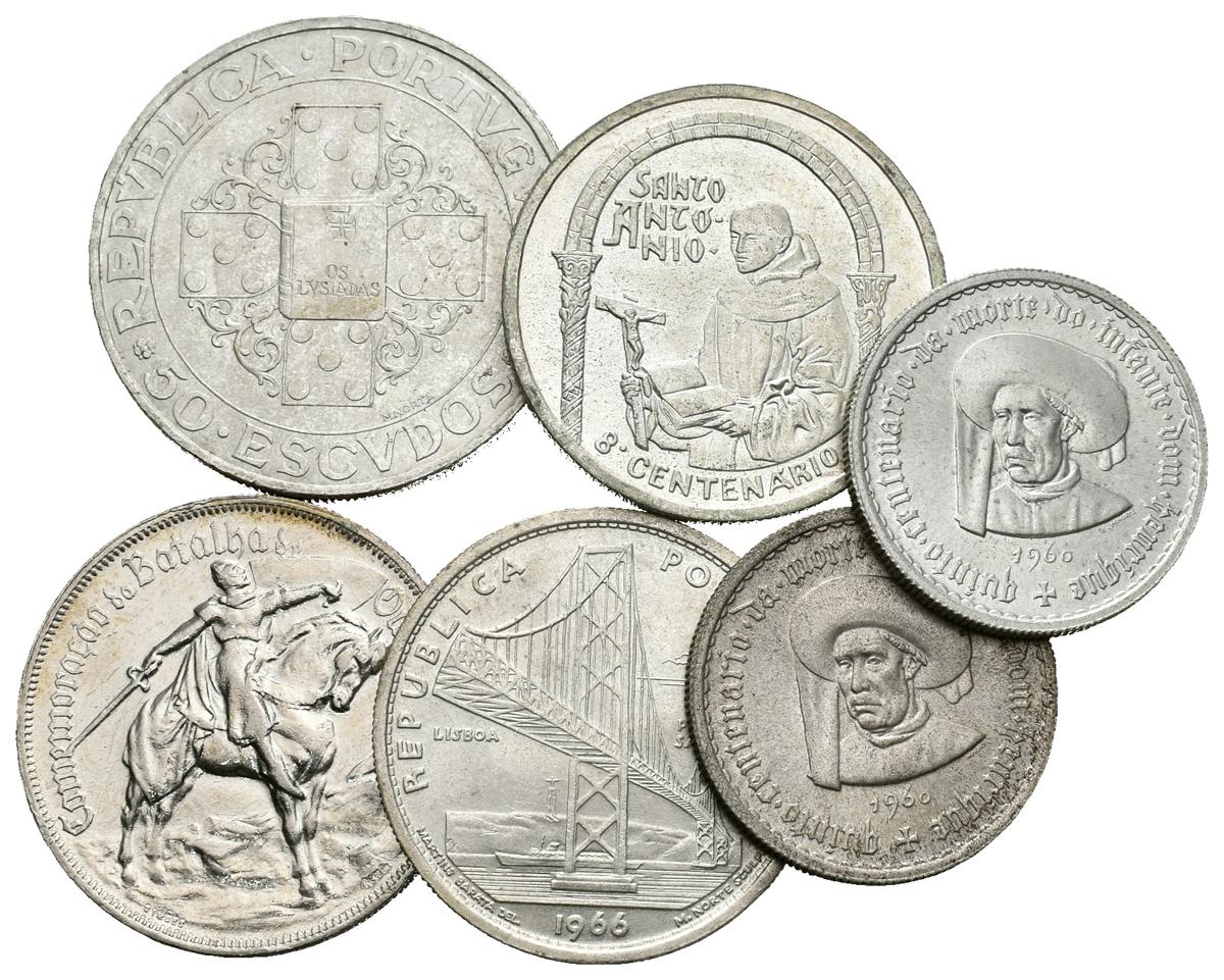 PORTUGAL. Lote compuesto por 6 monedas de plata, conteniendo: 5 Escudos 1960 (2); 10 Escudos 1928; 20 Escudos 1966; 50 Escudos 1972 y 500 Escudos 1995. Ar. MBC+/SC. A EXAMINAR.