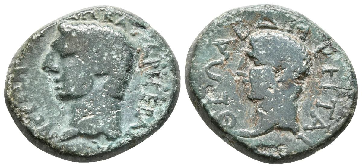 NERON y DIVO AUGUSTO. Ae20. 54-68 d.C. Abdera, Thracia. A/ Cabeza desnuda de Nerón a izquierda. R/ Cabeza desnuda de Divo Augusto a izquierda. RPC 1730; Varbanov 7; SNG Copenhagen 382-383. Ae. 6,30g. MBC.