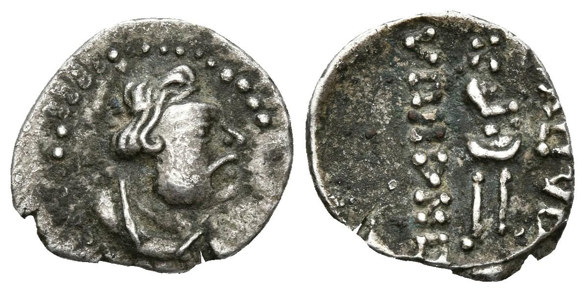 IMPERIO KUSHAN, Kujula Kadphises. Obolo. (Ar. 0,74g/13mm). 50-90 d.C. Ceca incierta de Tayikistán. (Senior B2.3; ANS Kushan 38.42). MBC.