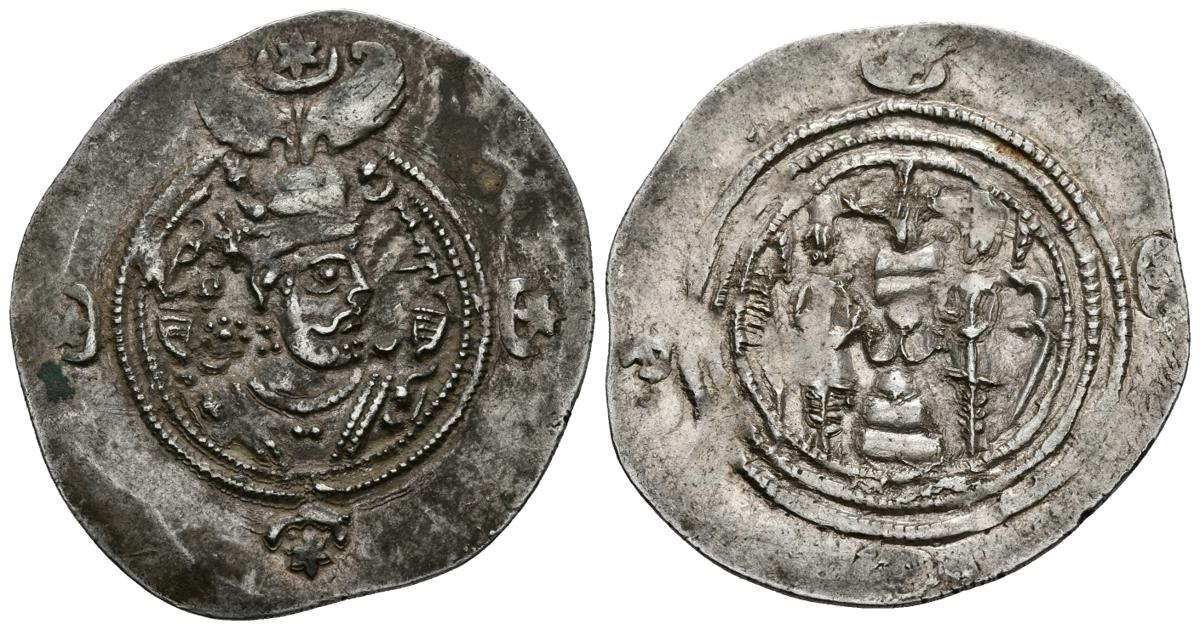 IMPERIO SASANIDA, Khusru II. Dracma. (Ar. 4,10g/30mm). 591-628 d.C. (¿año 36?). GD (Jayy).(Göbl type II/2). MBC-.