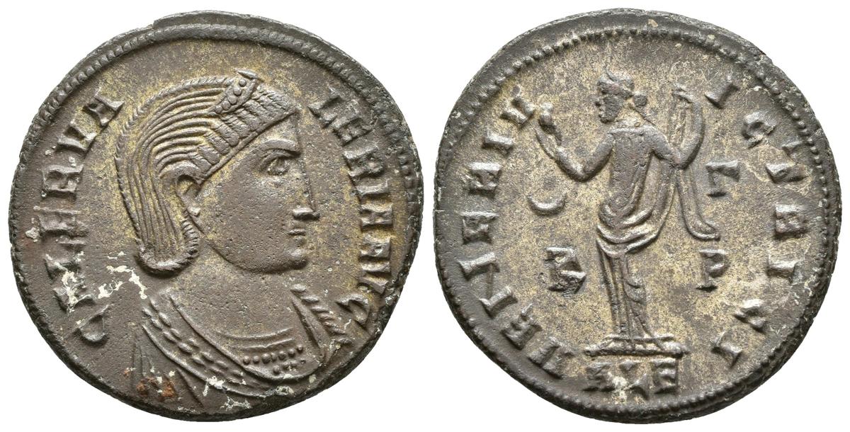 GALERIA VALERIA. Follis. 308 d.C. Alejandría, 2ª Oficina. A/ Busto con diadema y drapeado a derecha. GAL VALERIA AVG. R/ Venus estante a izquierda con manzana y sosteniendo su vestido, a ambos lados Creciente K-Gamma P. VENERI VICTRICI, en exergo ALE. RIC VI 128a. Ae. 6,39g. MBC+.