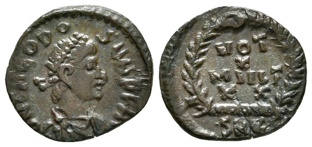 TEODOSIO I. Nummus. (Ae. 0,93g/19mm). 378-83 d.C. Cícico. (RIC 21c; Cohen 68). MBC+.