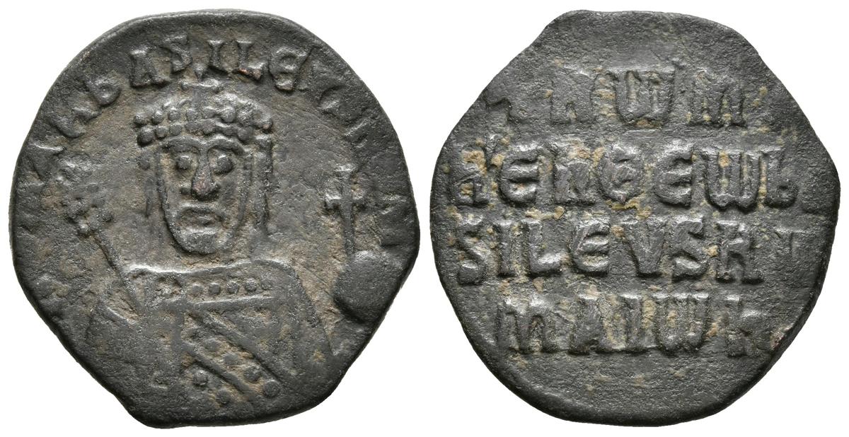 CONSTANTINO VII Porphyrogenitus con ROMANUS I. Follis. (Ae. 5,24g/23mm). 920-944 d.C. Constantinopla. (DOC 35b; Seaby 1760). MBC.