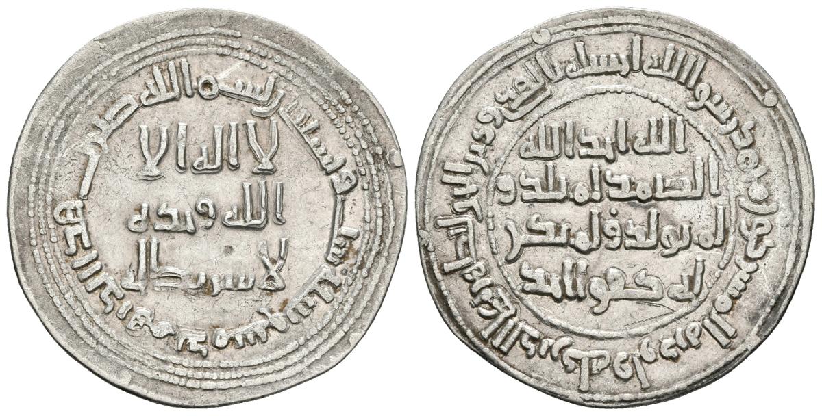 CALIFATO OMEYA. Al-Walid I Ibn ´Abd Al-Malik. Dirham. 96 H. Dimashq (Damasco). Album 128. Ar. 2,89g. Graffitis. MBC+.