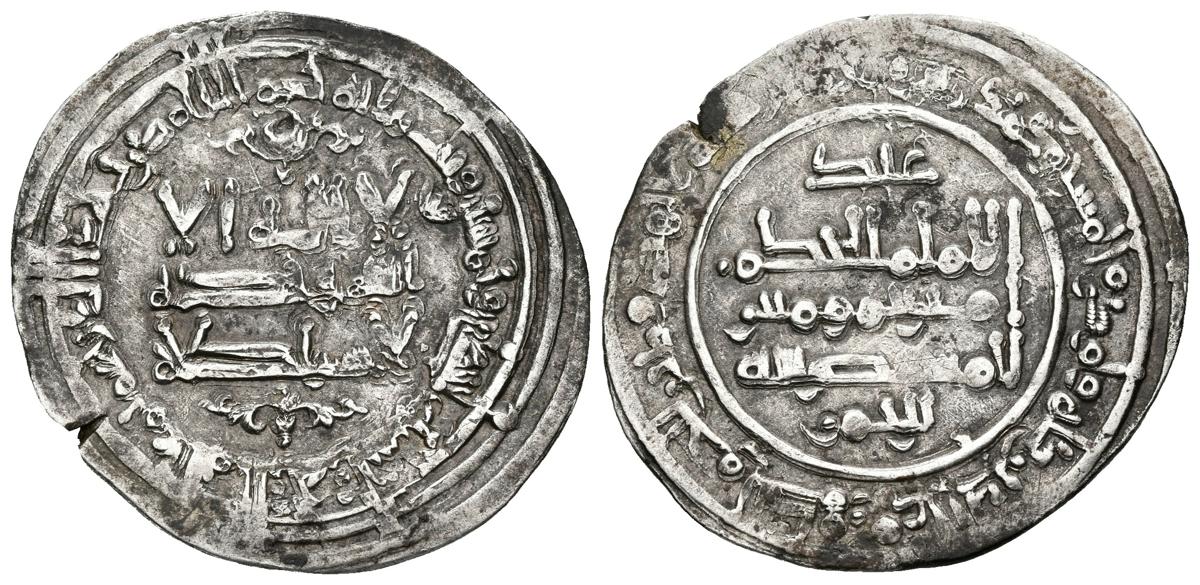 CALIFATO DE CORDOBA. Al-Hakam II. Dirham. 351 H. Madinat Al-Zahra. Citando a ´Abd-Al-Rahman en la IIA. Vives 449. Ar. 2,95g. Anv. algo repintado. MBC-/MBC.