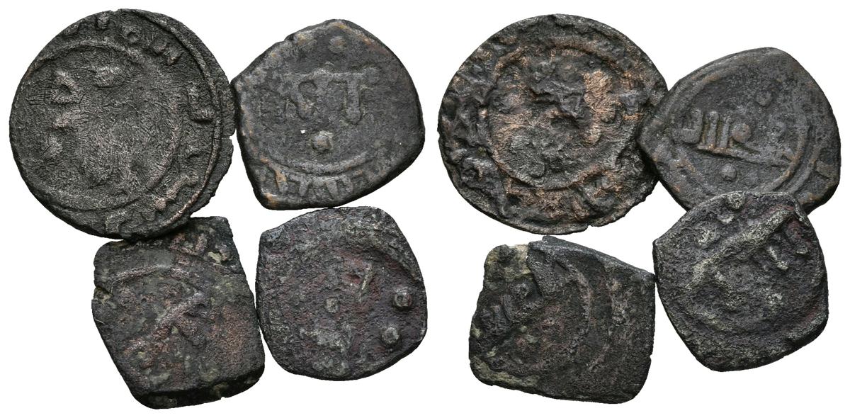 TAIFA DE CORDOBA. Conjunto de 4 fracciónes de Dirham. Banu Djahwar. 422-462 H. A nombre del Imam Abd Allah. Frochoso "Las monedas de los Banu Yahwar de Córdoba", pág. 200; Medina 117. Ve. A EXAMINAR.