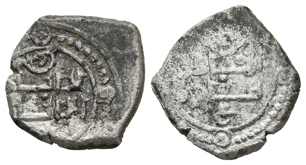 TAIFA DE TOLEDO Y VALENCIA. Al-Qadir Yahya II. Fracción de dirham. 467-478H. J. José Rios G-12/1var1-3. Ve. 1,51g. Rico en plata, inusual en estas piezas. MBC.