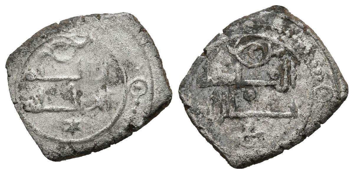 TAIFA DE TOLEDO Y VALENCIA. Al-Qadir Yahya II. Fracción de dirham. 467-478H. J. José Rios G-12/1var1-3. Ve. 1,48g. Rico en plata, inusual en estas piezas. MBC-/MBC.