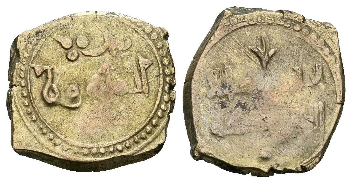 TAIFA DE TOLEDO Y VALENCIA. Yahya Al-Ma´mun. Fracción de dinar. 435-467 H. Vives 1100; Prieto 335. Au. 1,24g. Acuñación débil. MBC-.