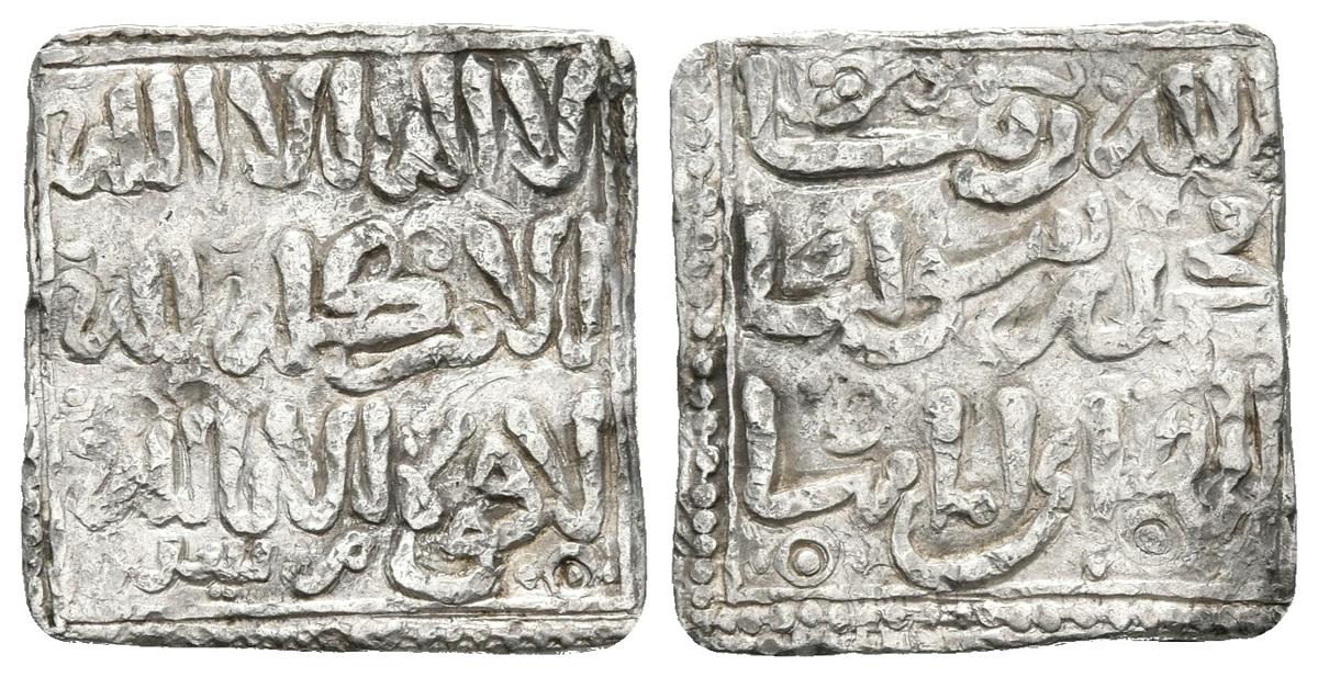 ALMOHADES. Dirham. Anónimo. Mursiya (Murcia). Vives 2096; Haz 1115. Ar. 1,49g. Golpecitos. MBC-.