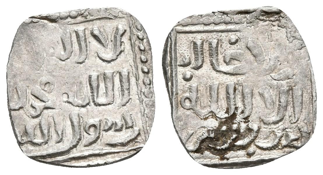 REINO DE GRANADA. Nasrids. Anónimo, atribuída a Muhammad V. 1/4 Dirham. Sabta (Ceuta). Vives 2199; R. Lorente 66. Ar. 0,53g. Depósito. MBC+.