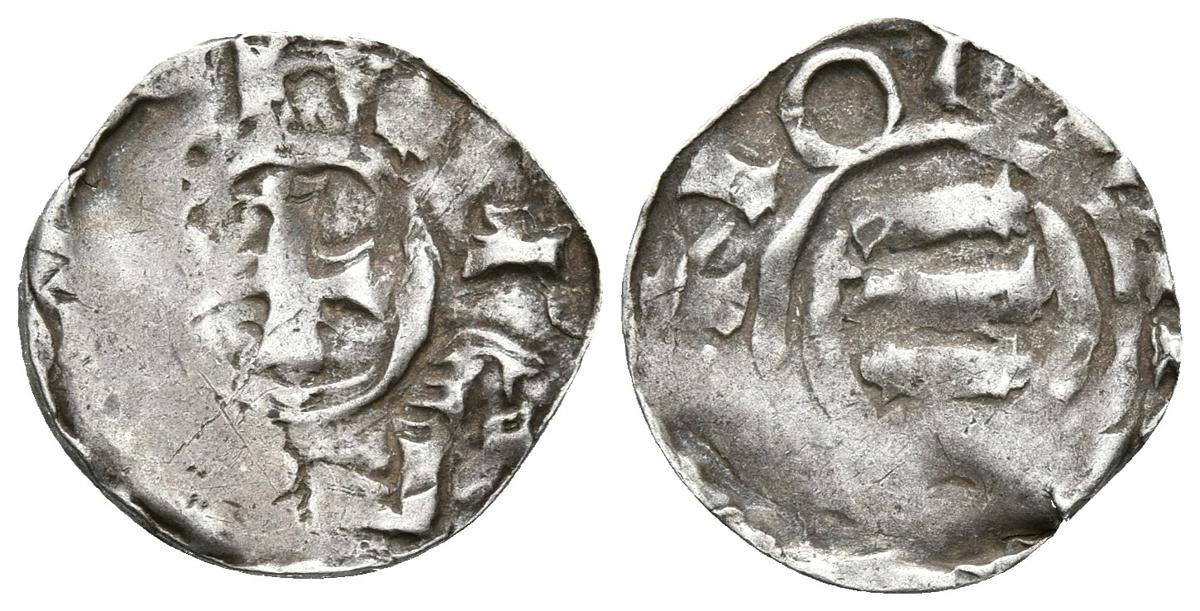 BISBE FRODOI. Obolo de imitación carolingia. (870-890) Comtat de Barcelona. A nombre de CARLVS. Balaguer 9. Ar. 0,70g. MBC-. Muy rara.