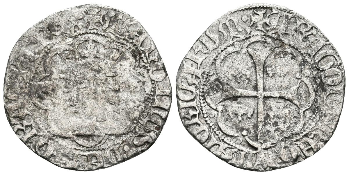 MARTI I. 1 Real. (1396-1410). Mallorca. A/ Busto de frente entre bueyes. R/ Cruz latina central con bueyes en los cuarteles. Cru. 2322. Ar. 2,86g. BC+. Rara.