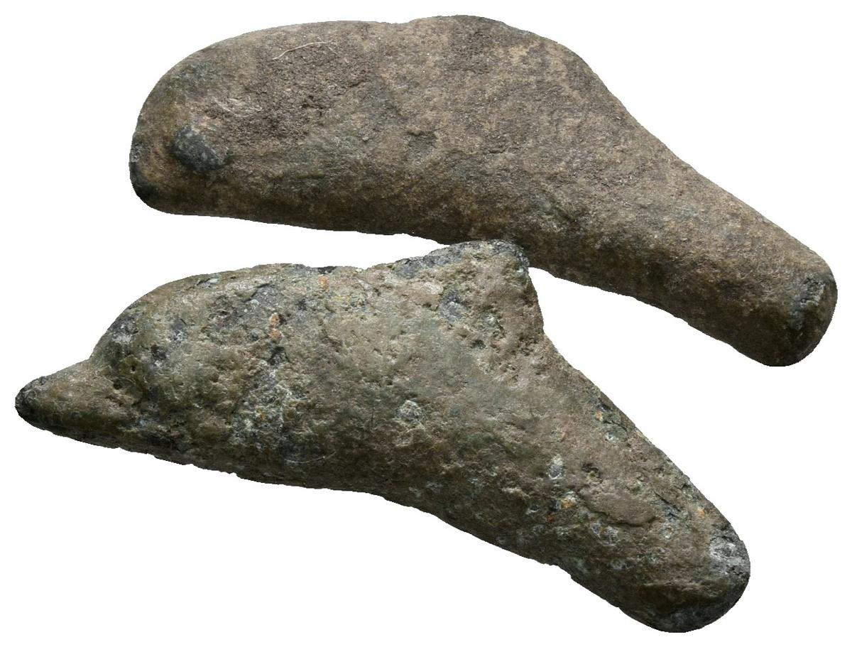 OLBIA. 2 monedas tipo delfín. 525-350 a.C. R/ O-Y. SNG BM 334. Ae. MBC/MBC+.