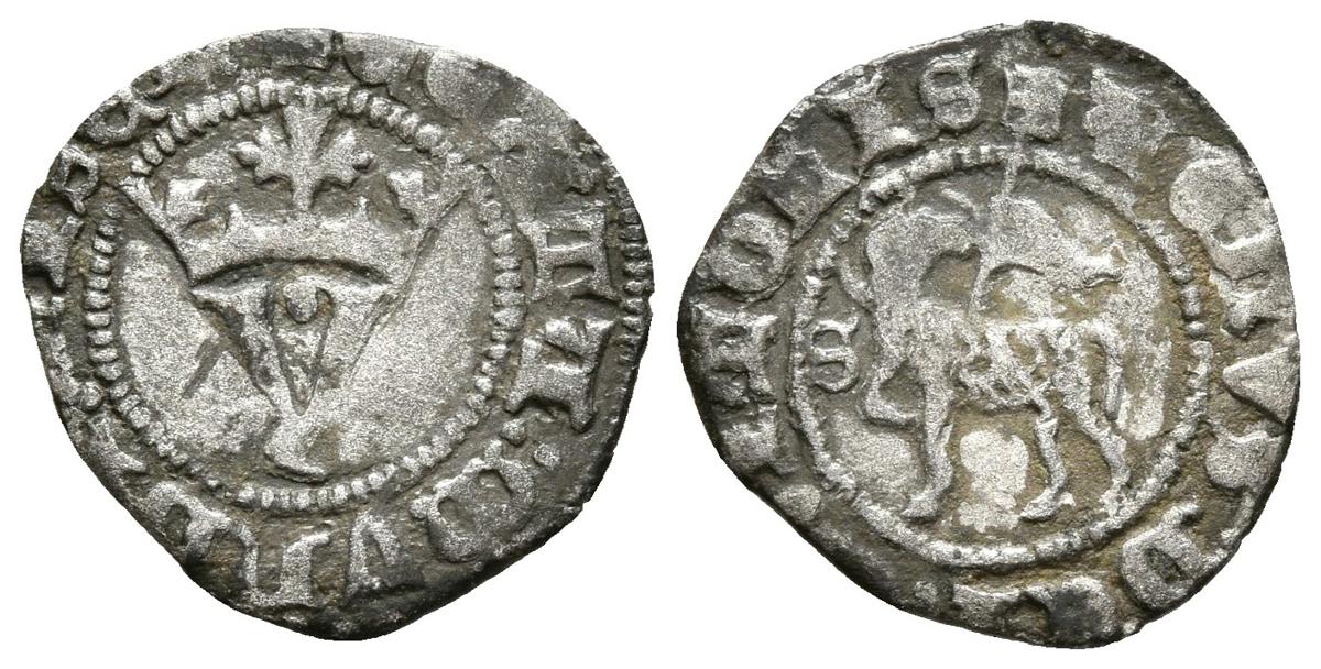 JUAN I (1379-1390). 1/2 Blanca del Agnus Dei. (Ve. 0,77g/ 15mm). Sevilla. (FAB-562). MBC. Escasa.