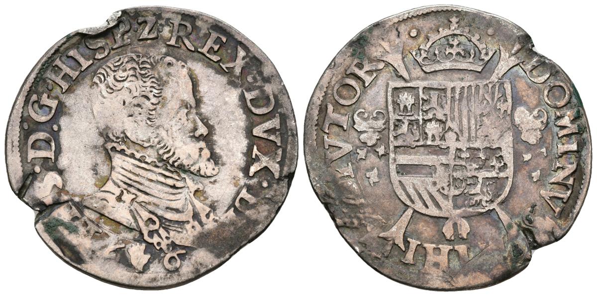 FELIPE II. 1/5 Ecu. (Ar. 6,35g/31mm). 1566. Amberes. (G.H. 212-1b; W. 722). MBC-. Cospel irregular. Tono.