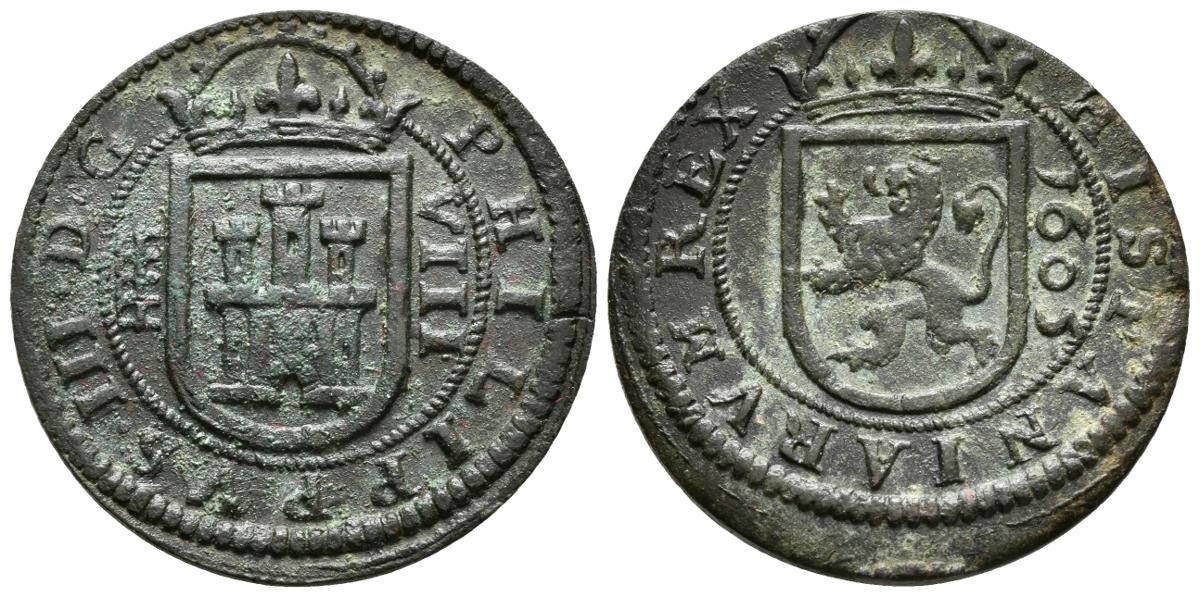 FELIPE III. 8 Maravedís. 1605. Segovia. Cal-761; J.S. D-219. Ae. 6,37g. MBC.