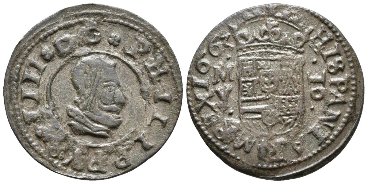 FELIPE IV. 16 Maravedís. 1663. Madrid Y. Cal-1402; J.S. M-406. Ae. 4,26g. MBC-.