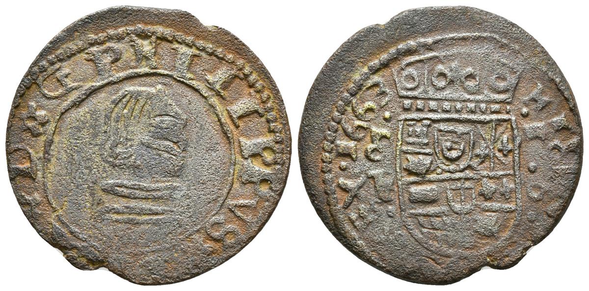FELIPE IV. 16 Maravedís. 1663. Sevilla P. Falsa de época. J.S. pág. 470-471. Latón. 3,55g. MBC-.