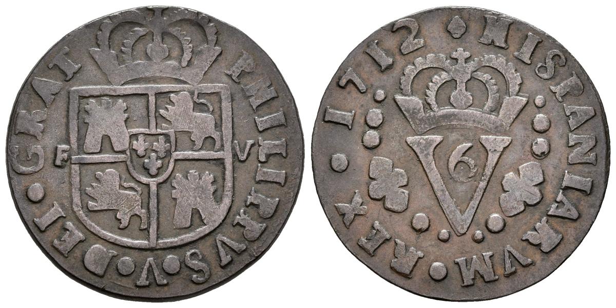 FELIPE V. 1 Sisé. 1712. Valencia. Cal-2008. Ae. 4,14g. MBC-/MBC.
