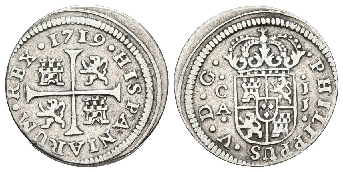 FELIPE V. 1/2 Real. 1719. Cuenca JJ. Cal-1733. Ar. 1,52g. MBC-.