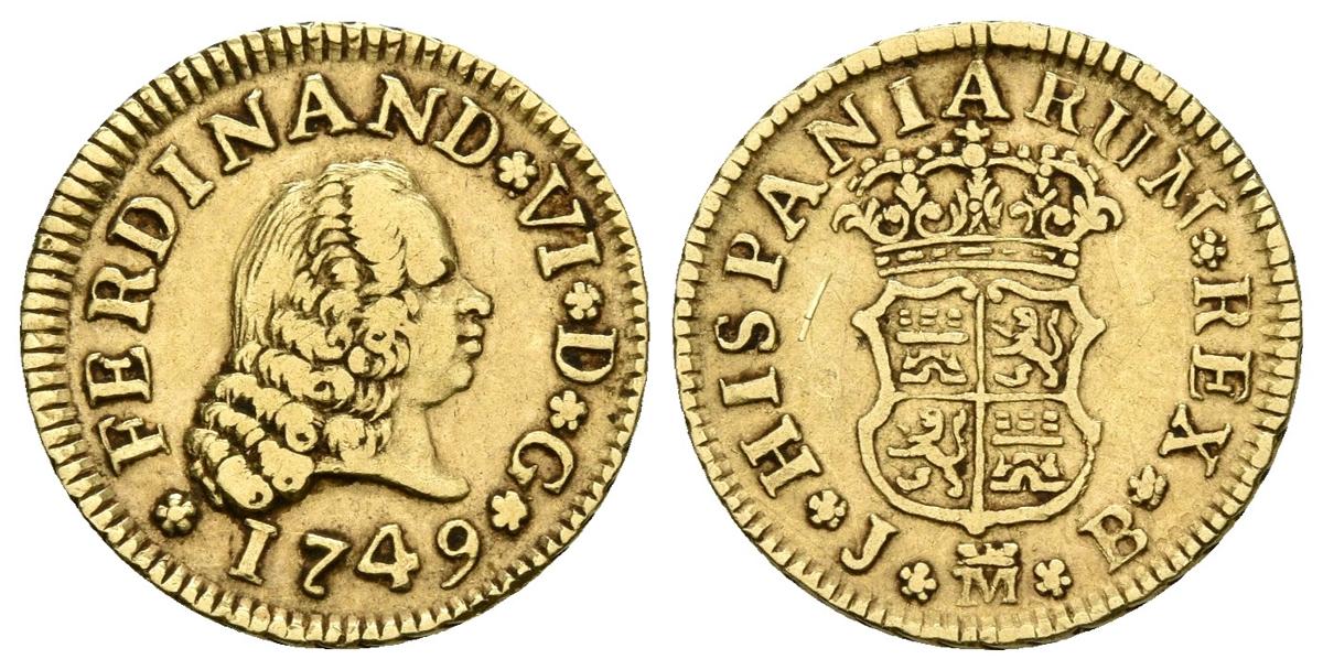 FELIPE V. 1/2 Escudo. 1749. Madrid JB. Cal-245. Au. 1,77g. MBC.