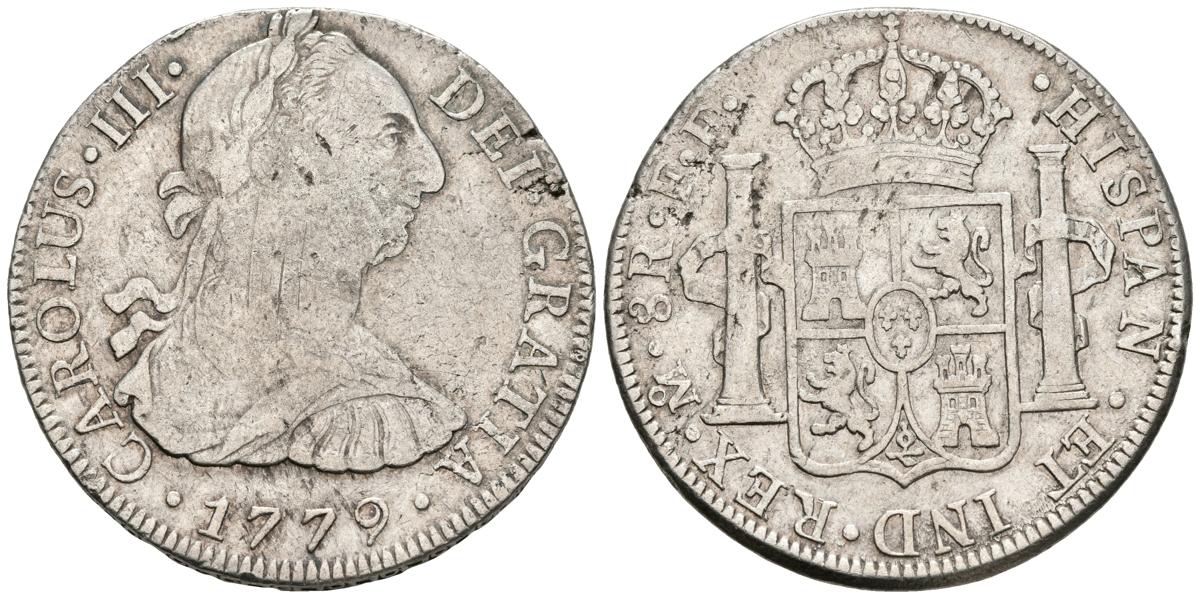 CARLOS III. 8 Reales. (Ar. 26,66g/38mm). 1779. México FF. (Cal-929). MBC. Rayas.