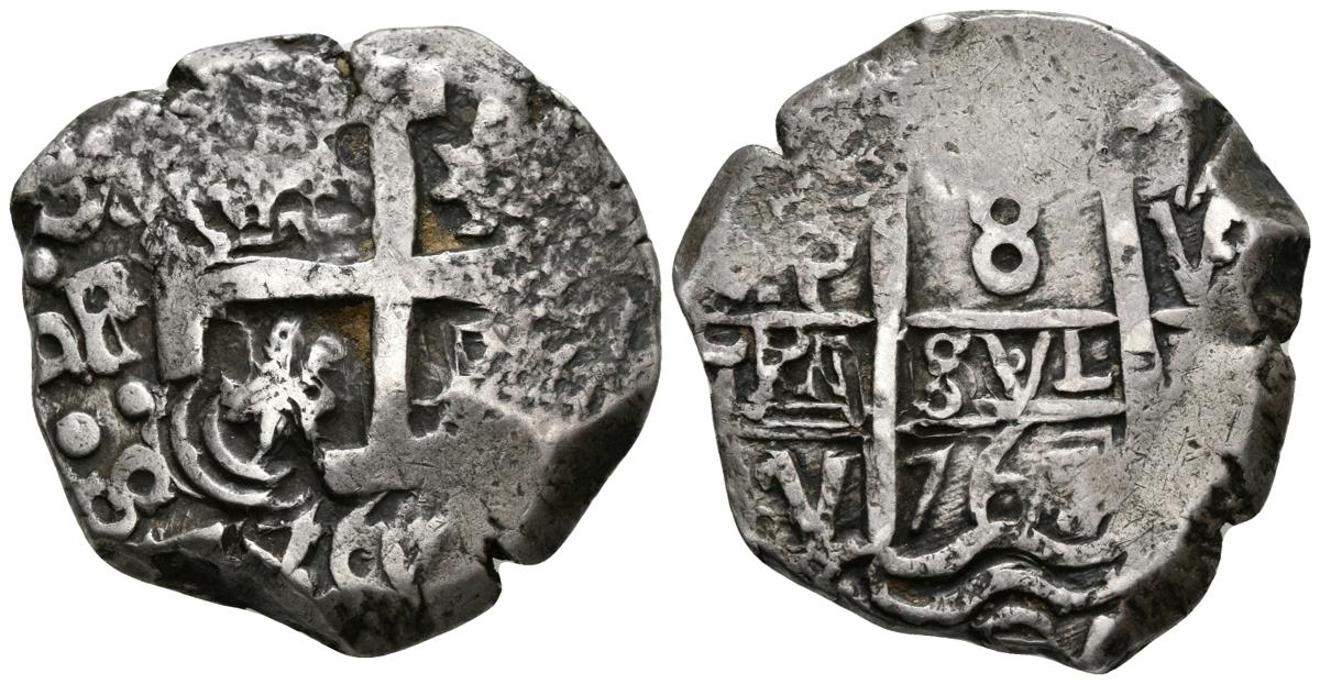 CARLOS III. 8 Reales. 1767. Potosí V. Dos fechas visibles. Cal-954. Ar. 26,77g. MBC.