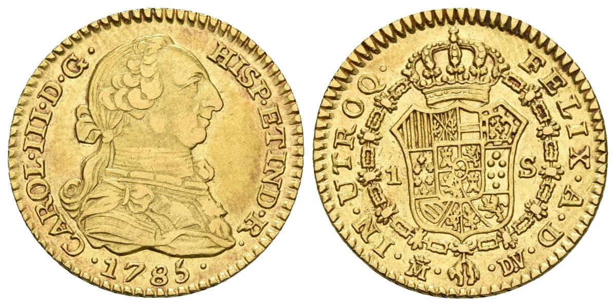 CARLOS III. 1 Escudo. (Au. 3,38g/18mm). 1785. Madrid DV. (Cal-777). MBC+.