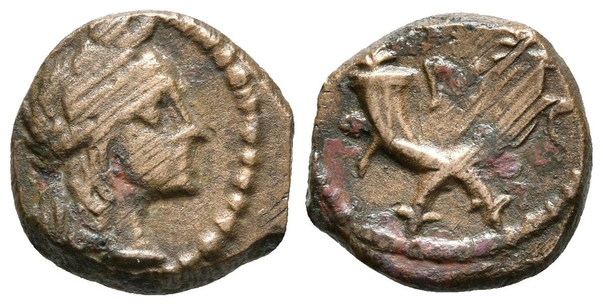 REINO NABATEO. Aretas IV con Shaqilath I. Ae13. 9 a.C.-40 d.C. Petra. A/ Cabeza laureada a derecha. R/ Dos cornucopias. BMC 30; Meshorer, Nabataea 68. Ae. 2,37g. MBC+.
