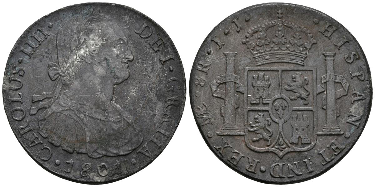CARLOS IV. 8 Reales. 1801. Lima IJ. Cal-656. Ar. 27.02g. Oxidaciones marinas. MBC-/MBC.