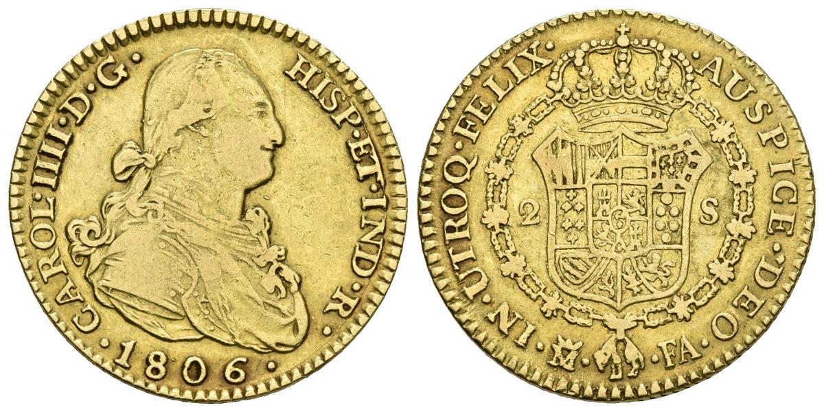 CARLOS IV. 2 Escudos. (Au. 6,73g/22mm). 1806. Madrid FA. (Cal-349). MBC/MBC-.