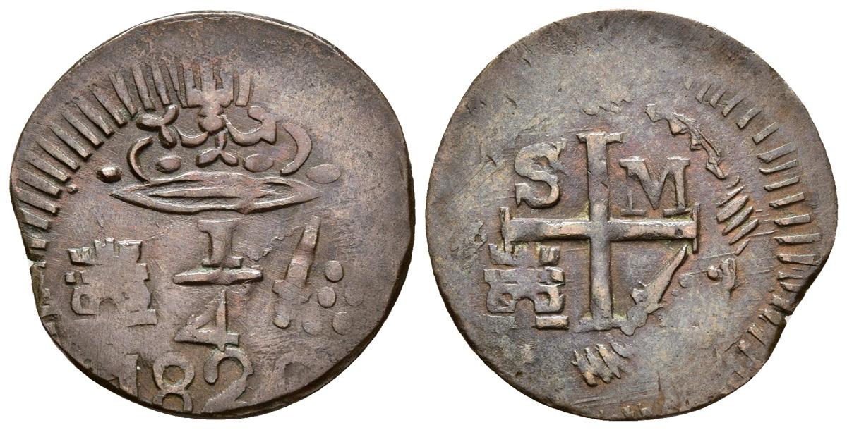 FERNANDO VII. 1/4 Real. (Ae. 1,60g/21mm). 1820. Colombia. (Restrepo-104; Cal-1668). MBC-.