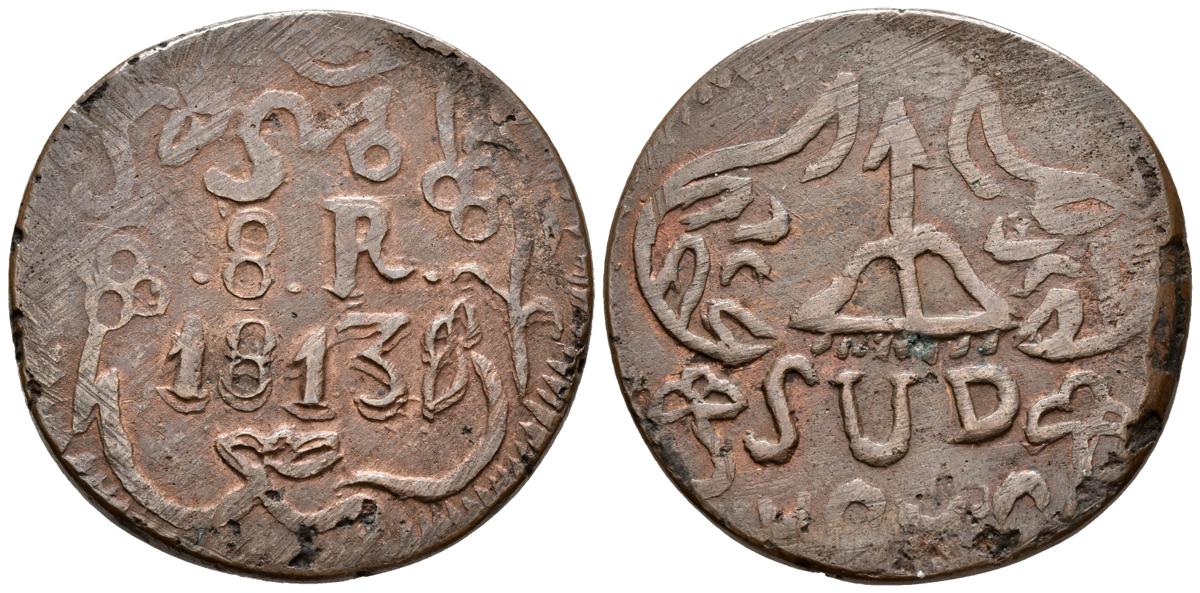 FERNANDO VII. 8 Reales. (Ae. 15,73g/39mm). 1813. México. (Cal-579). MBC. Vanos de acuñación y rayas de ajuste.